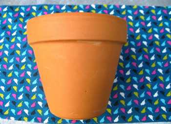 5. Клеим ткань на горшок, осторожно разглаживая, чтобы она легла максимально ровно.
