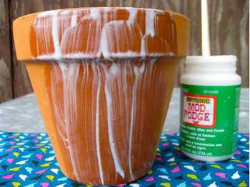 Шаг 7. Покройте всю поверхность горшка слоем клея или акрилового лака и дайте ему высохнуть.