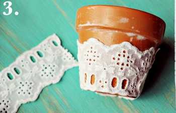 Шаг 2.Нанесите толстый слой клея на поверхность горшка как показано на фотографии.