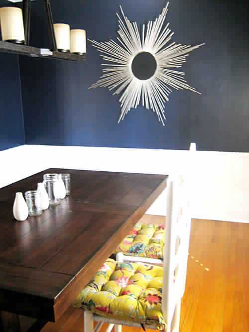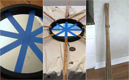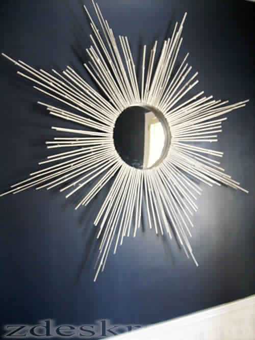 Идея от Meet Michelle «самопровозглашенного художника», как она сама себя называет, и здесь ее же фотографии, где великолепно видно, как сделать декор маленького круглого зеркала бамбуковыми палочками.