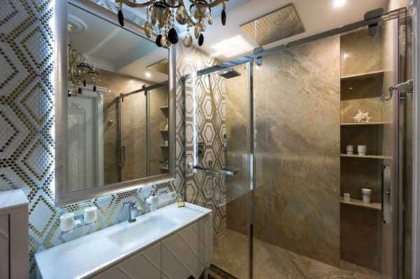 зеркальная мозаика создает в интерьере ванной комнаты атмосферу роскоши и шика