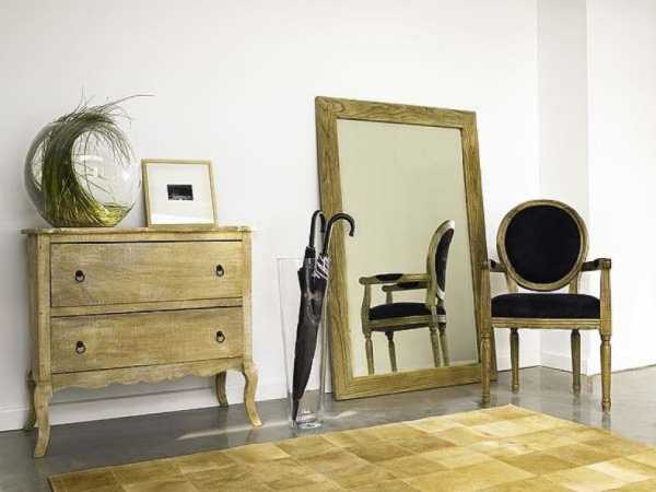 Особенным предметом считается зеркало. Практически в любом доме оно присутствует. Популярным стало декорирование стены зеркалом во всех комнатах.