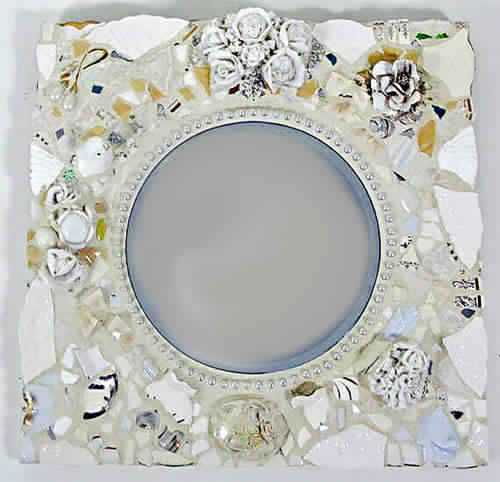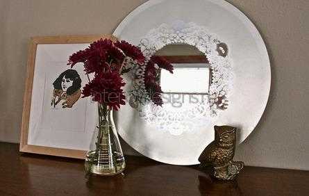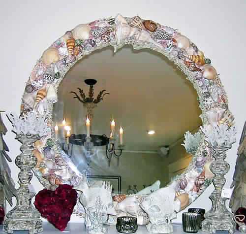 Всегда жаль разбитой вазочки или статуэтки, такая красивая рама для маленького круглого зеркала даст достойный шанс фарфору на продолжение роскошной жизни.