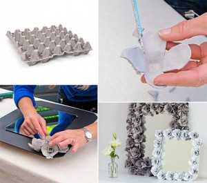 Довольно красивое и необычное оформление можно придумать для зеркала ванной, используя остатки керамической плитки. Ее осколки можно выложить в виде мозаики, что придаст зеркалу интересный вид. Если же таких элементов нет, то не строит расстраиваться – их с успехом заменит обычная яичная скорлупа или же цветной картон.