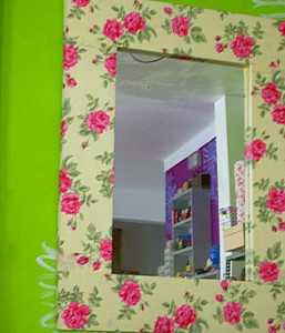 Данные фрагменты следует вырезать, придать им необходимый внешний вид, а затем их нужно будет прикрепить к рамке зеркала при помощи клея. После того, как рамка полностью высохнет, ее можно будет покрыть несколькими слоями прозрачного лака. Дополнительно украсить зеркало можно с помощью бусин, стразов и прочих декоративных элементов.