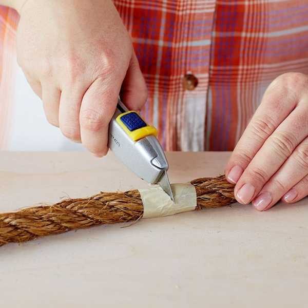 Если необходимо, очистите конец каната. Плотно оберните конец каната изолентой и разрежьте канцелярским ножом обклеенный участок каната посередине.