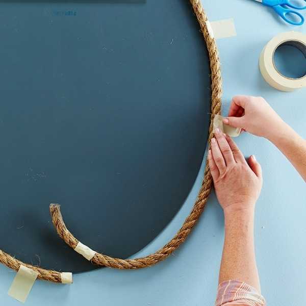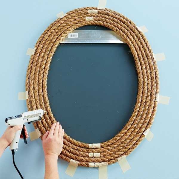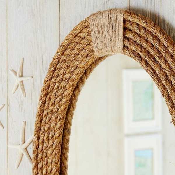 Придайте оригинальности овальному зеркалу, изготовив для него раму из каната.