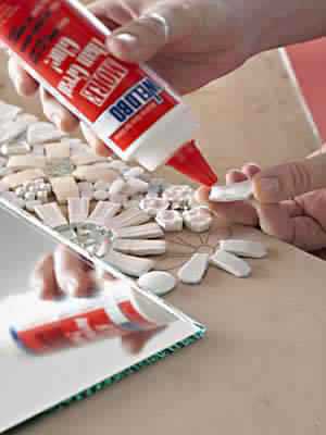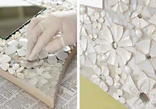 Говорят, что нельзя пользоваться битой посудой. Дизайнеры из журнала Du it Yorself и не предлагают использовать битую посуду, в качестве посуды, а предлагают использовать ее в качестве прекрасной мозаики для декора зеркала.