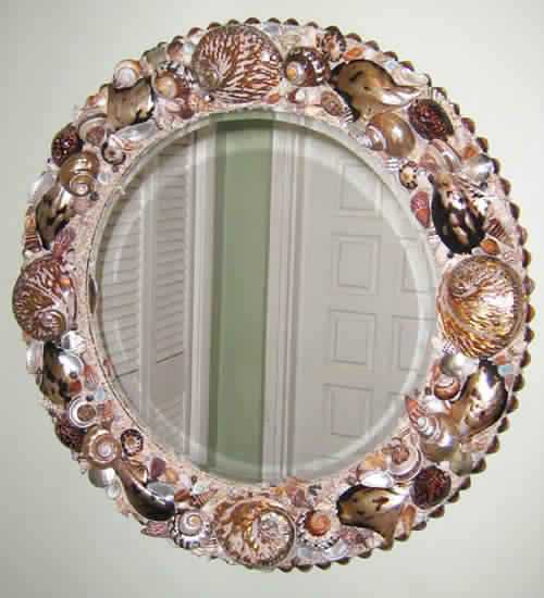 Наиболее уместной также будет являться отделка для зеркала ванной, созданная из ракушек и морских камушек. Их можно собрать летом на пляже или же приобрести в специализированных магазинах.