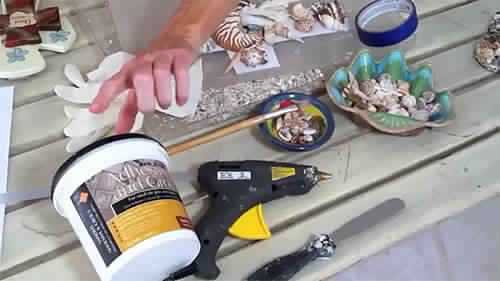 Для работы она использует акриловые краски, клеевой пистолет и массу ракушек, которые собирает на берегу океана со своими сыновьями.