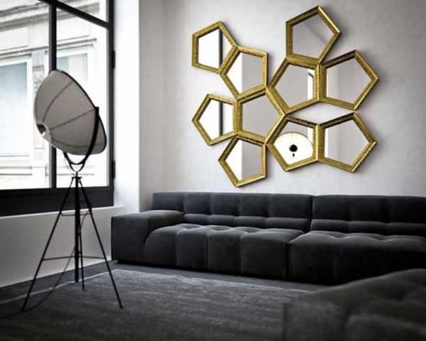 Мы уже знаем, что декор стены может быть выполнен одним зеркалом. Это элегантно и величественно, однако не менее выразительна будет и россыпь из небольших зеркальных элементов. Украшение пустующих поверхностей группой зеркал не просто поможет заполнить проблемный участок в интерьере, но и наполнит пространство игрой бликов света, что придаст утонченность декору.