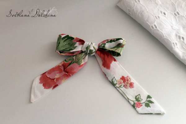Выкраиваем бант, размером 8*60 см, не забываем припуски на швы, прошиваем, выворачиваем и утюжим.