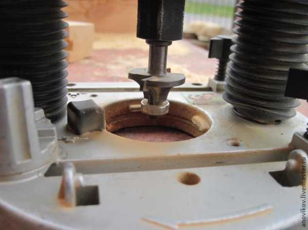 Чтобы закруглить края основания, применяется полукруглая насадка для фрезы. Зажимаем струбциной и закругляем края.