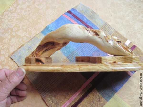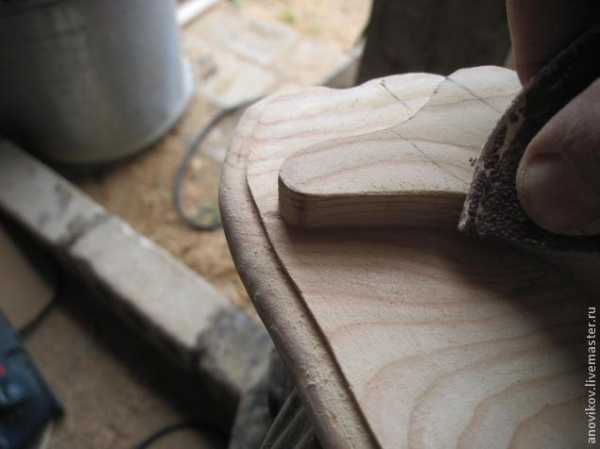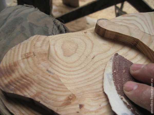Для начала берется деревянная заготовка и с помощью лобзика придаете ей понравившуюся вам форму. Очищаете заготовку от коры, если она есть на ней и шлифуем.