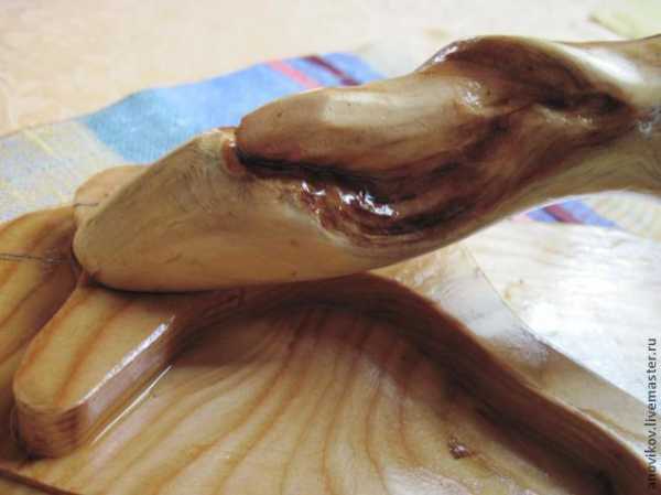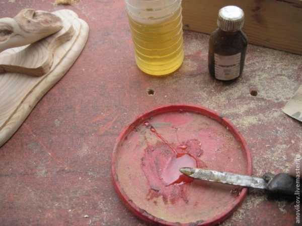 - Для придания оттенка ручке используют морилку по дереву подходящего тона.