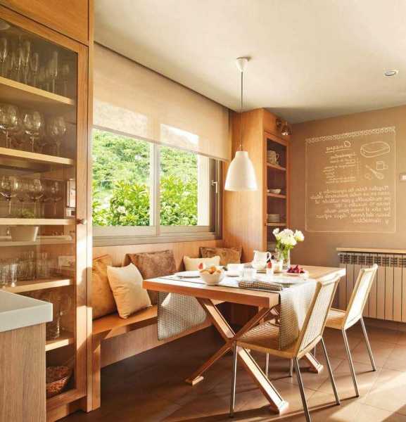 Покрытия из натуральной древесины хорошо смотрятся в кухонном пространстве и в столовой зоне. Специалисты рекомендуют использовать флизелиновые покрытия, заменяющие привычные фартуки.