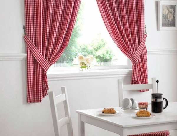 Для шторных композиций на кухне подойдут полоски из той же ткани, что и занавески, завязанные красивым бантом или держатели из столовых приборов. В последнем случае оба полотна удобно заправлять на одну сторону.