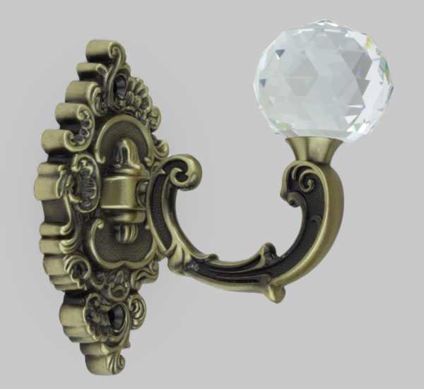 - Металл – самый долговечный материал из представленных, а значит такие держатели прослужат Вам не один год. Чаще всего держатель представляет собой большой крючок, за который необходимо перебросить штору. Выбирайте их для тяжелых портьер, гардин, где необходимо максимально затемнить пространство. Также изделия выглядят особенно красиво из-за характерного блеска и кованных элементов. Наиболее популярен цвет бронзы, который вписывается во многие интерьеры.