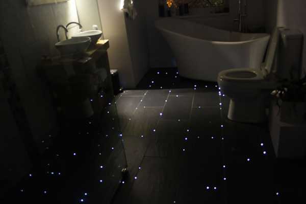 14. Диоды, встроенные в пол, которые в темноте так завораживающе светятся в ванной комнате.