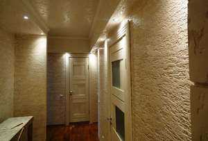 Часто для отделки стен прибегают к использованию декоративной штукатурки как плоской, так и рельефной, — этот метод быстрый, недорогой; он обеспечивает хорошую теплоизоляцию, маскировку мелких трещин и дефектов.