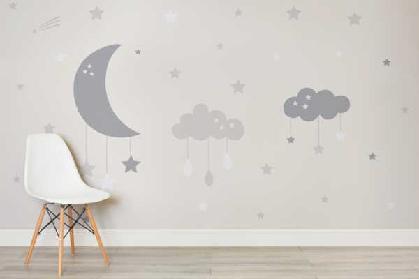 - виниловые наклейки с предметами архитектуры, облаками, снежинками, оленями;