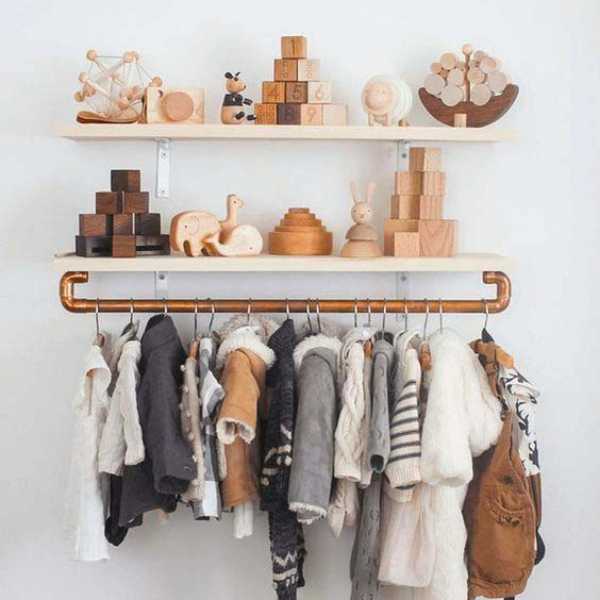 Открытые полочки на стенах хорошо вписываются в детские интерьеры в скандинавском стиле. Стол, стулья уместны будут простого дизайна, без каких-либо декоративных элементов. Для детской допустимы фигурные стулья, напоминающие силуэты животных. Материал, из которого изготовлена мебель, — дерево или ламинат, чаще всего светлый или покрытый белой краской, но бывает и такое, что встречается ярко рыжий «орех» на полу или в элементах мебелировки.