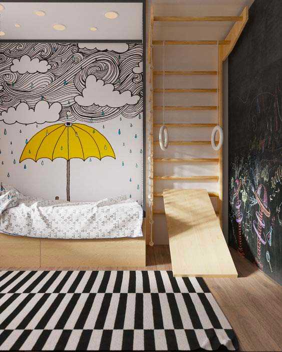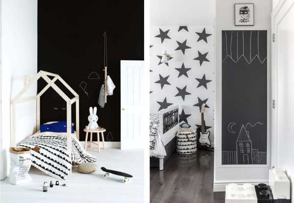 Изюминкой детской в скандинавском стиле может стать стена с грифельным покрытием. Такой оригинальный дизайнерский приём может стать развлечением для всей семьи: отличная возможность для самых маленьких развивать художественные навыки, необычное место, чтобы по-новому взглянуть на сложные школьные задачи, место для любовных посланий и милых семейных напоминаний.