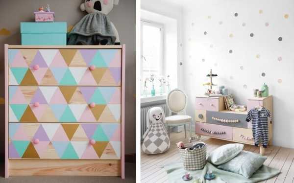 Когда все вокруг имеет простые формы, очень легко дополнить интерьер самодельным декором. Совет: возьмите самый простой икеевский комод (главное, чтобы он не был покрыт лаком) и попробуйте задекорировать его сами. Например, так, как на картинке. Вам понадобиться лишь малярный скотч и несколько акриловых красок. опубликовано econet.ru