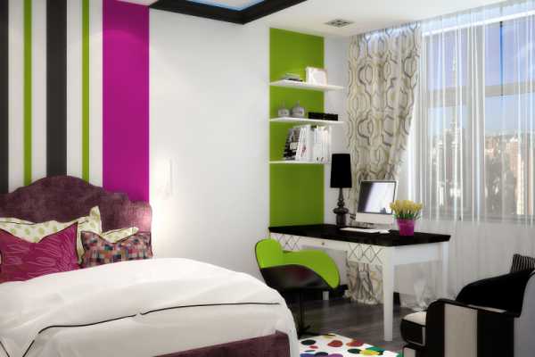 Даже если Вы будете оформлять комнату на «будущее», не нужно оформлять интерьер в ней очень скучным, но зато дорогостоящим и с определенным вкусом. Все давным-давно знают, что в юношестве практически во всем приветствуется максимализм. И в отношении вкусовых качеств, и предпочтений и уж тем более – поведения! Именно поэтому, интерьер комнаты для подростка необходимо создавать с учетом невероятных цветов и их комбинаций, форм, фактур и цветовых решений!
