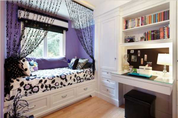 Учитывайте то, что ребенку важно самовыражаться. Пусть планировка квартиры Вас не «смущает». Оформляя интерьер комнаты для подростка, учитывайте его же интересы и пожелания. В соответствии с ними обустраивайте детскую для подростка, а можете даже сделать ее тематической. Можете дать ему возможность, чтобы он сам выбрал мебель в свою комнату, которая ему больше всего будет по нраву и вкусу, или же рисунок на фото обои. Если у Вас девочка, Вы вместе с ней же, собственными руками можете заняться шитьем красивых и неповторимых штор или, например, подушек на кровать. Такой способ отличный тем, что Вы сможете научить ее необходимым в жизни навыкам, а также сблизитесь. Просмотрите варианты оформлений на фото дизайн комнаты для подростка.