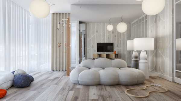 Разделяйте комнату на функциональные зоны — так она будет казаться шире и просторнее. Зонирование пространства может быть выполнено различными способами: от разного цвета отделки до перегородок в виде полок и шкафов.
