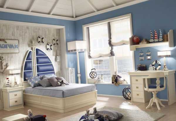 Начитавшись книг о приключениях пиратов, мальчишки начинают грезить путешествиями. Именно таким ребятам прекрасно подойдет морской стиль. Главными цветами тут выступают белый, золотистый и, конечно, все оттенки синего.