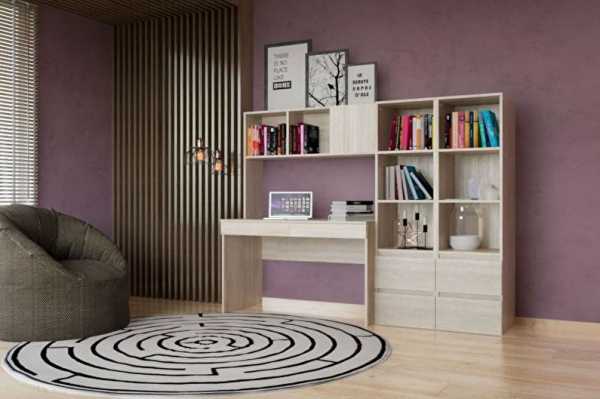 Рекомендуется подбирать стол и стул исходя из особенностей ребенка, с учетом того, что подростки часто проводят много времени возле компьютерного экрана. Освободить поверхность рабочего стола помогут встроенные выдвижные ящики или навесные полки, расположенные на расстоянии вытянутой руки.