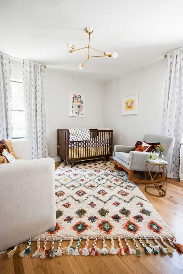Например, если детская в скандинавском стиле оформляется для девочки, ее можно украсить яркими коврами и покрывалами, разноцветными мягкими подушками, а также легкими цветными занавесками.