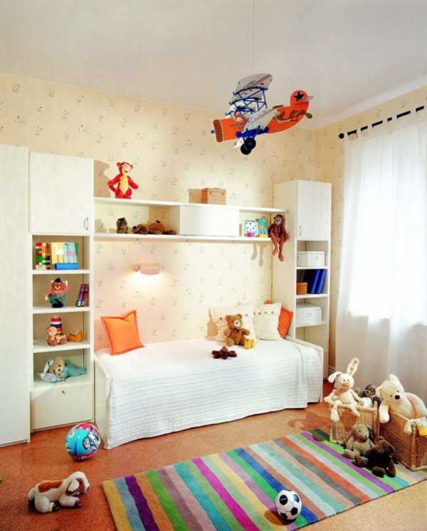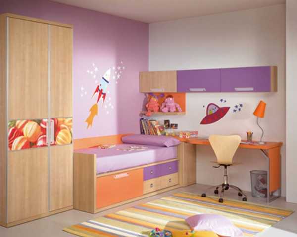 Разнообразие моделей кровати выпускаемых современными производителями позволит выбрать идеальный вариант даже для очень маленькой детской. Кровать, совмещенная с полками и ящичками, выдвигаемое спальное место все это очень удачно может решить проблему недостатка территории, и одновременно с этим обустроить комфортное место для сна. Нужно помнить, что для сна ребенку необходим покой и спокойное освещение. Располагайте кровать подальше от окна, а для локального освещения отлично подойдут смешные детские ночники.