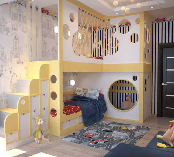 Совет! Очень интересный вариант двухъярусной кровати, где на верхней полке ребенок может спать, а внизу расположится его игровая зона.