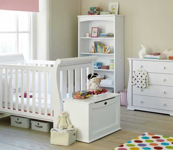 В специализированных отделах магазинов и в компаниях по производству детских моделей для маленькой комнаты можно приобрести гарнитур в едином стиле. Дизайнеры продумывают комплектацию с тем, чтобы такая мебель была максимально функциональной – кроватка оснащена ящиками, тумбочки или боковые шкафчики очень вместительны, столик сделан с учетом роста малыша.