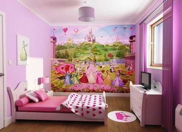 Ни для кого не секрет, что маленькая детская комната декорированная материалами светлых спокойных цветов, визуально намного больше, чем она есть на самом деле. Но для ребенка намного приятнее и интереснее, если на стенах он будет видеть любимых героев сказок и мультфильмов.