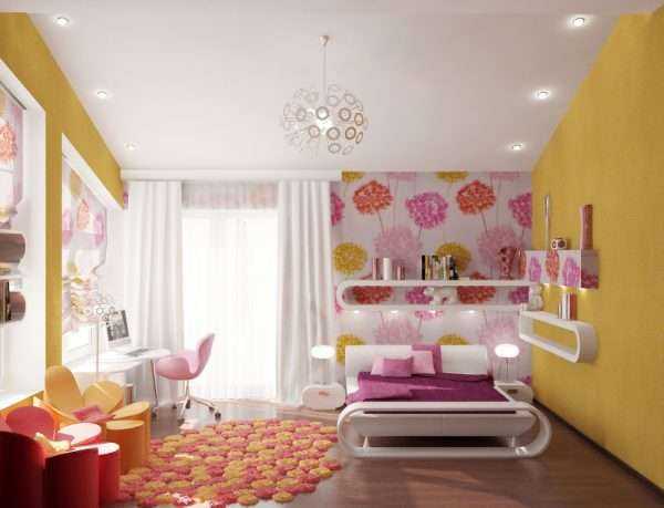 Маленькой девочки вряд ли понравится однотонное стилистическое решение и безликое пространство. Для ребенка такой дизайн будет очень скучным. Так как же найти компромисс? Ярким акцентом могут быть текстильные элементы, шторы и ковры. К тому же психологи доказали, что детям младшего возраста нравятся яркие цвета, а вот школьники уже предпочитают более спокойные оттенки. Если выбирается вариант со спокойной отделкой стен и ярким текстилем, то такую комнату изменить под выросшего ребенка проще простого. Изменения в комнате можно осуществить без особых затрат. А стены можно преобразить при помощи самоклеющихся наклеек, которые можно сменить, как только они надоели.