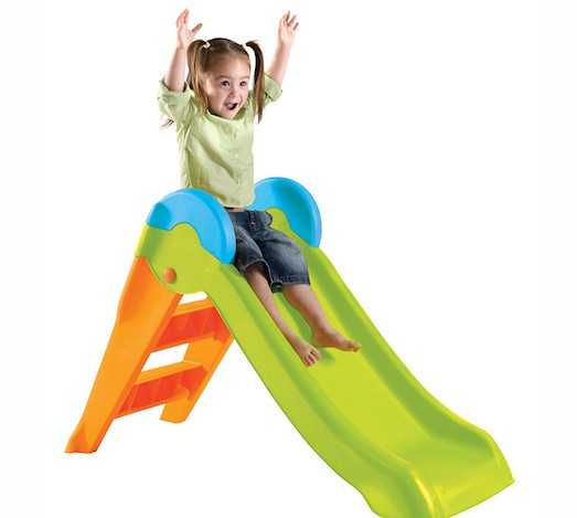 Для самых маленьких подойдет небольшая горка. Если ребенок случайно перекинет ее на себя, то никакого вреда она ему не нанесет.