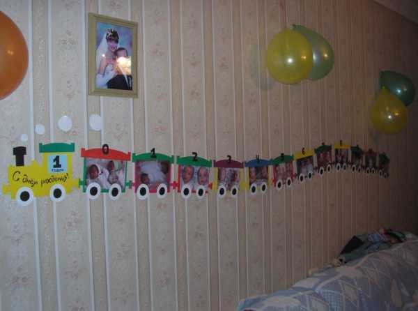 - Найдите фотографии, напоминающие о лучших моментах детства малыша. Выберите из них те, которые нравятся имениннику, иначе он может рассердиться, что вы выставили напоказ фото, которых он стесняется. Теперь прикрепите все фотокарточки на одну или несколько веревочек с помощью небольших прищепок и тоже развесьте по комнате.
