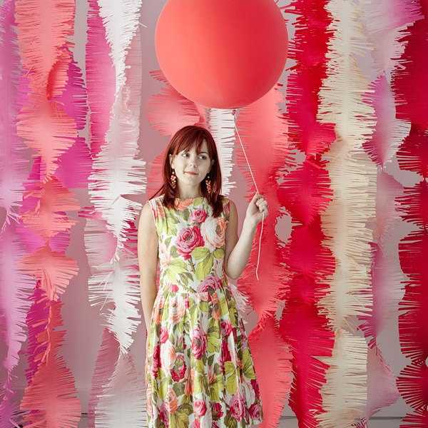 Потолок можно украсить разноцветными лентами, направив их от люстры к стенам