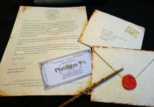 Любой праздник начинается с приглашения. Уже на этом этапе вы можете сделать акцент на тематике торжества. Напишите их на бумаге, искусственно состаренной с помощью заварки, склейте конверт пластилином и поставьте на нем печать, похожую на герб Хогвартса. С совой письмо отправлять не обязательно, можете использовать более традиционные способы.