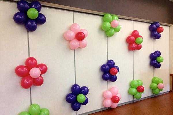 Стены можно украсить обычными шариками, создав из них интересные композиции. Складывать из шаров арки, фигурки животных и волшебные замки дано не всем, поэтому если вы сомневаетесь в своих собственных силах, можете сделать заказ в фирме, занимающейся праздничным декором.