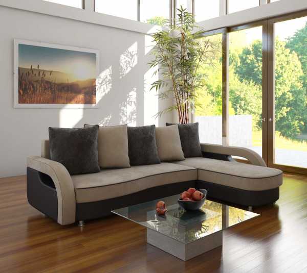 Эта современная модель подойдет для гостиной любого размера, потому что в данное время существует огромное количество самых разных угловых диванов, размеры которых колеблются от самых маленьких, до массивных, в длину достигающих 3 метров.