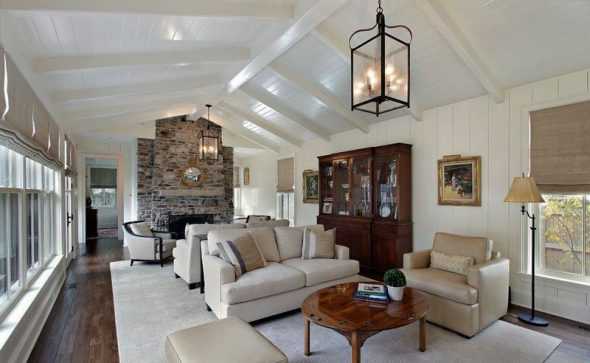 Вполне оригинально и экстраординарно смотрится зона отдыха в гостиной для хозяина дома, в котором будет стоять кресло-качалка, при этом еще и рядом, возле камина или аквариума.