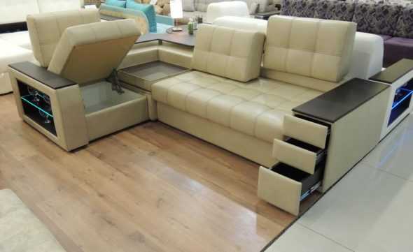 Все эти интересные детали мягкой мебели, создают удобства, позволяют по максимуму сохранить свободное пространство, что особенно важно для небольших, стандартных квартир.
