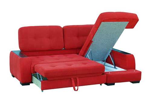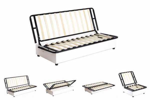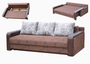 - Механизм Раскладушка. Включает в себя сразу несколько разновидностей (французский, итальянский и американский вид), которые раздвигаются по типу классической раскладушки. Спальное место состоит из трех секций, чтобы их разложить потребуется потянуть край сидения на себя. Такие механизмы легко выходят из строя и не подходят для ежедневного использования. Ящик для белья обычно не предусмотрен конструкцией.