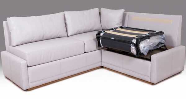 - Ящик для белья. В раскрытом состоянии в диване образуется большая ниша. Туда удобно складывать постельное белье и сопутствующие вещи.
