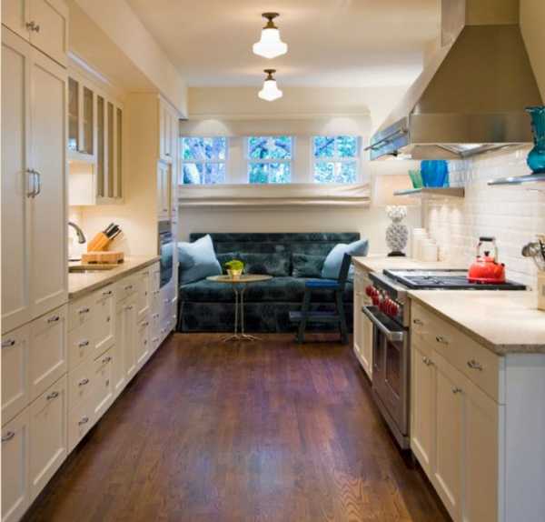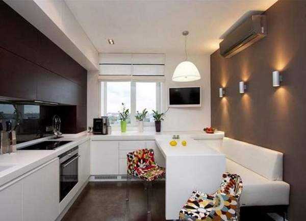 - если кухня небольшая, то даже компактная модель дивана способна загромоздить помещение, лишив его ощущения простора и свободы перемещения.